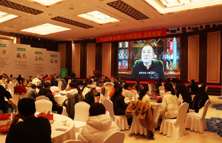 2023年12月26日,千山品牌全國行在山東泗水正式拉開帷幕。千山品牌事業(yè)部總經(jīng)理王松、山東直營倉銷售總監(jiān)楊秀山、泗水沐陽家居負責人宋肖東以及當?shù)匮b飾公司等百余位伙伴齊聚一堂,共同見證此次首發(fā)盛會。
