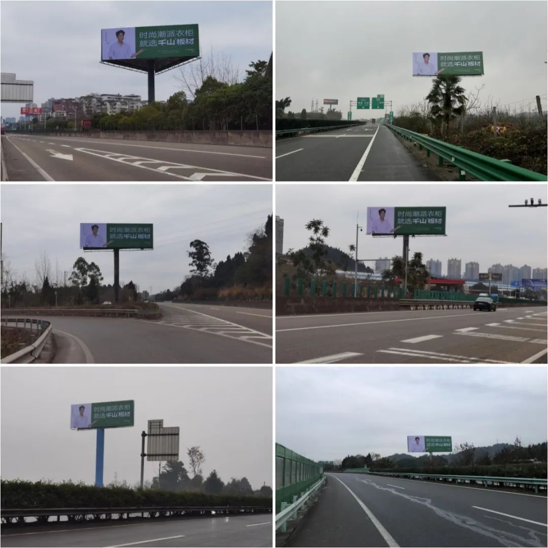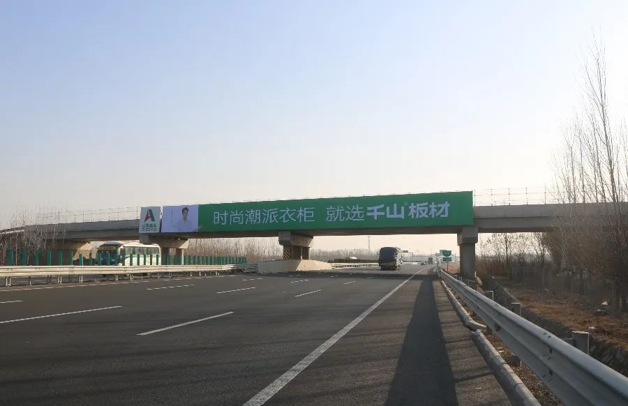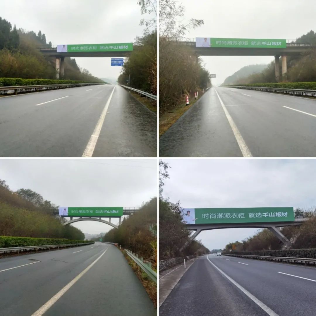 本次高速?gòu)V告形式依舊涵蓋跨線(xiàn)橋、單立柱,以千山2.0品牌色調(diào)綠色為主色調(diào),展示了全新品牌代言人李晨以及全新品牌LOGO。廣告畫(huà)面鮮艷、美觀、簡(jiǎn)潔,進(jìn)一步將“時(shí)尚潮派衣柜 就選千山板材”的品牌主張傳遞給更多的消費(fèi)者。