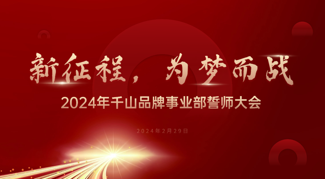 2月29日,“新征程 為夢(mèng)而戰(zhàn)”,2024千山品牌事業(yè)部誓師大會(huì)高燃啟動(dòng)。全體營(yíng)銷精英集結(jié)一堂,以飽滿的精神,簽署目標(biāo)軍令狀,燃情宣誓,吹響全面決勝的集結(jié)號(hào),奮力沖刺全年銷售目標(biāo)。