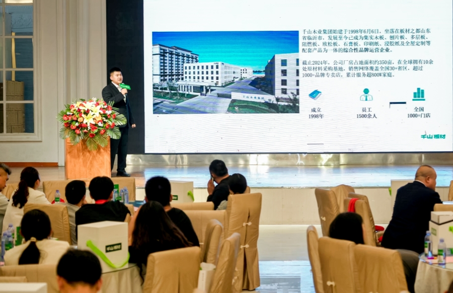 千山板材銷售部總監(jiān)董向陽上臺(tái)致辭。董總表示,千山堅(jiān)定品牌高端化發(fā)展方向,堅(jiān)定產(chǎn)品研發(fā)投入,堅(jiān)定營銷渠道精進(jìn)!站在全面發(fā)展的新階段,千山已做好充足準(zhǔn)備,和伙伴們一起迎接挑戰(zhàn),合作共贏。