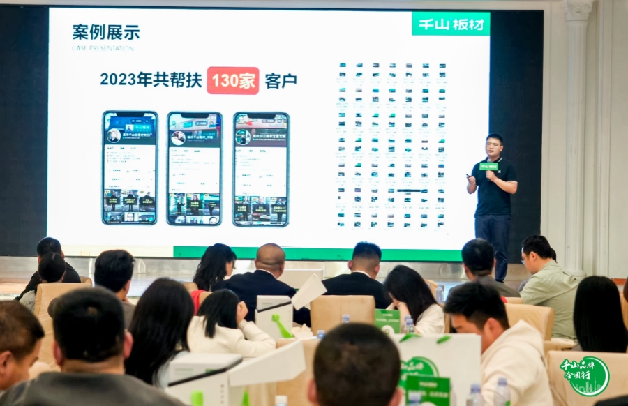 千山板材大區(qū)經(jīng)理王殿忠為大家分享了《新媒體運(yùn)營獲客》,向大家展示了千山板材優(yōu)秀經(jīng)銷商的短視頻賬號實(shí)例,對標(biāo)簽內(nèi)容進(jìn)行剖析,鼓勵(lì)大家勇于提升新媒體運(yùn)營能力,挖掘線上客戶,助力終端銷售。