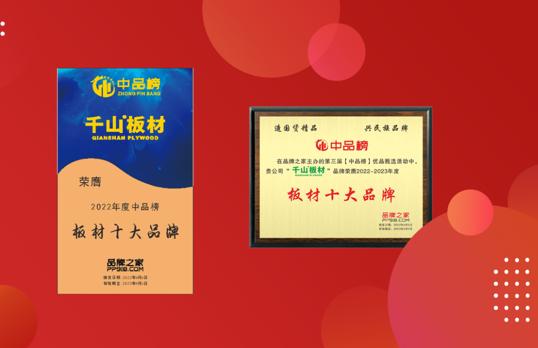 繼2021年榮獲中華板材網(wǎng)“中國板材十大品牌”、“生態(tài)板十大品牌”雙項殊榮后,千山板材載譽(yù)攀登,多年來相繼斬獲“板材十大品牌”、“板材影響力品牌”、“家具板十大品牌”、“2023年度最受設(shè)計師喜愛建材品牌”等多項行業(yè)榮譽(yù),傳遞優(yōu)秀企業(yè)的榜樣力量,積極助推行業(yè)發(fā)展!