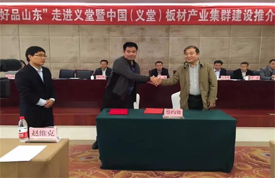 2016年10月28日,“好品山東”走進(jìn)義堂暨中國(義堂)板材產(chǎn)業(yè)集群建設(shè)會議在臨沂市成功召開。千山作為板材企業(yè)代表與“好品山東”現(xiàn)場簽訂戰(zhàn)略合作協(xié)議,進(jìn)一步提升品牌競爭力和影響力。