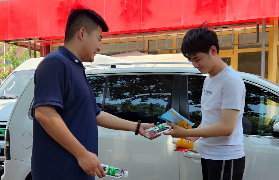 6月7日清晨,在臨沂一中、臨沂二中等高考考點,除了考生及家長的身影,還能看到千山板材的小伙伴們,他們早早抵達考點,準備飲用水、支起避暑帳篷,為考生和家長們提供一個相對涼爽、舒適的休息場所。