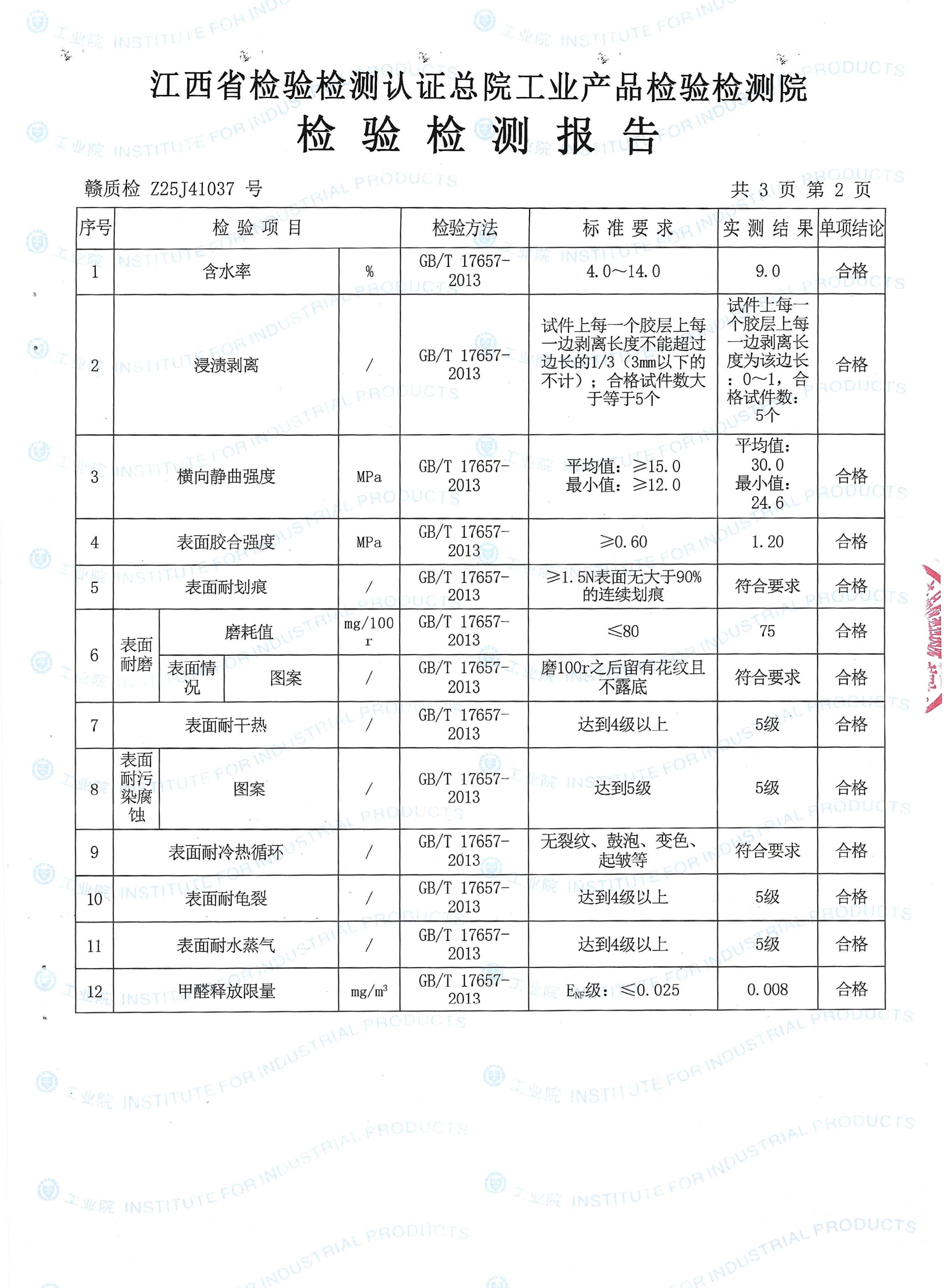 板材是否“經久耐用”,需要通過專業的靜曲強度、膠合強度、耐磨性等多維度物理指標來驗證,而千山板材在此次抽檢中,交出了一份“全優答卷”。在全方位性能檢測中,千山板材的含水率、浸漬剝離強度、表面耐劃痕性能、表面耐磨性均優于國家標準要求。