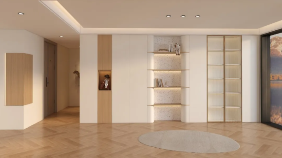 在推崇“高效極簡”生活理念的當下,門墻柜一體化作為家居領域的一次革新,順應了人們對生活品質與空間美學的追求,以突破格局界限、建立統一的空間視覺為手法,創造整體性和功能性更佳的居住體驗。