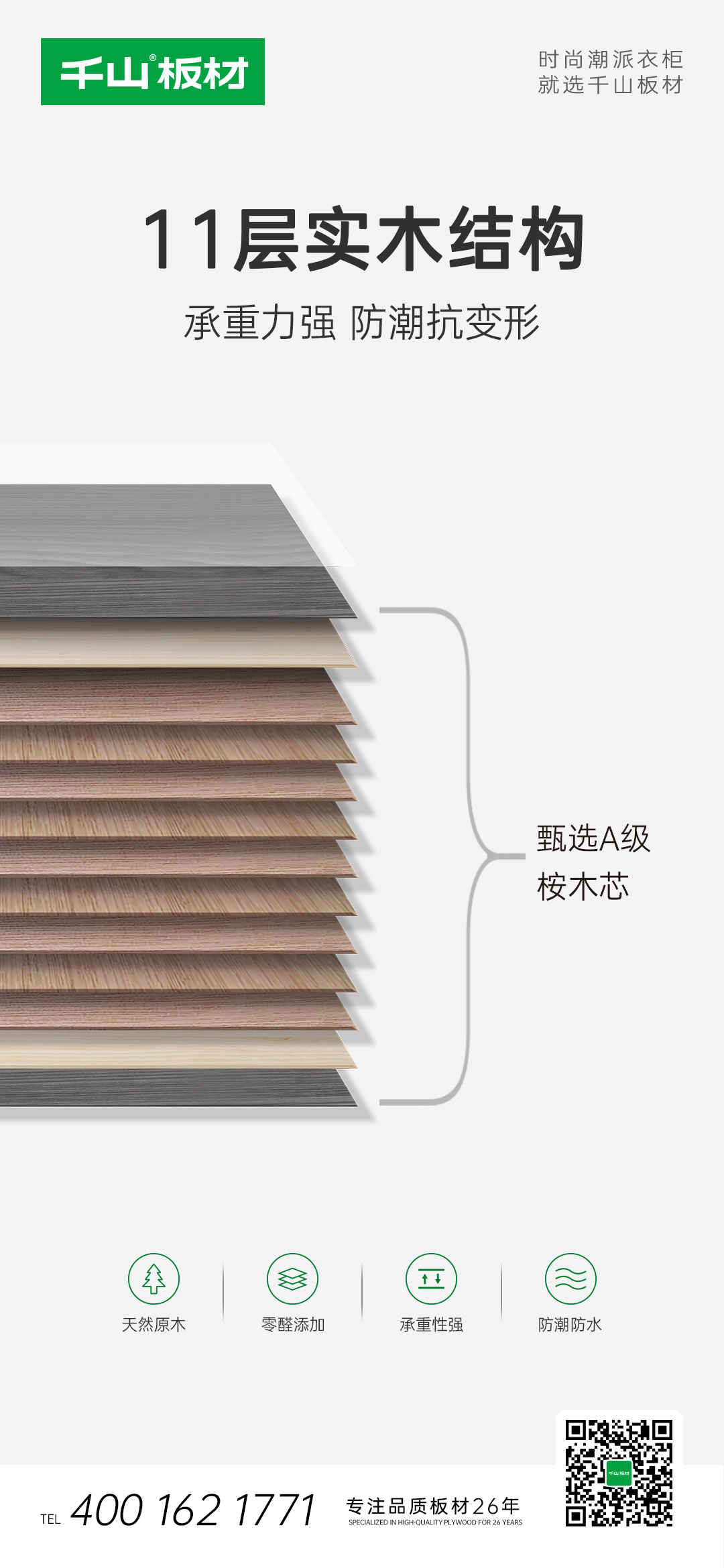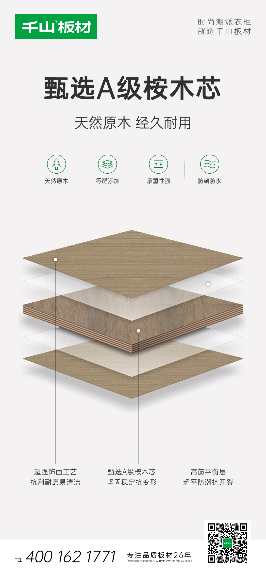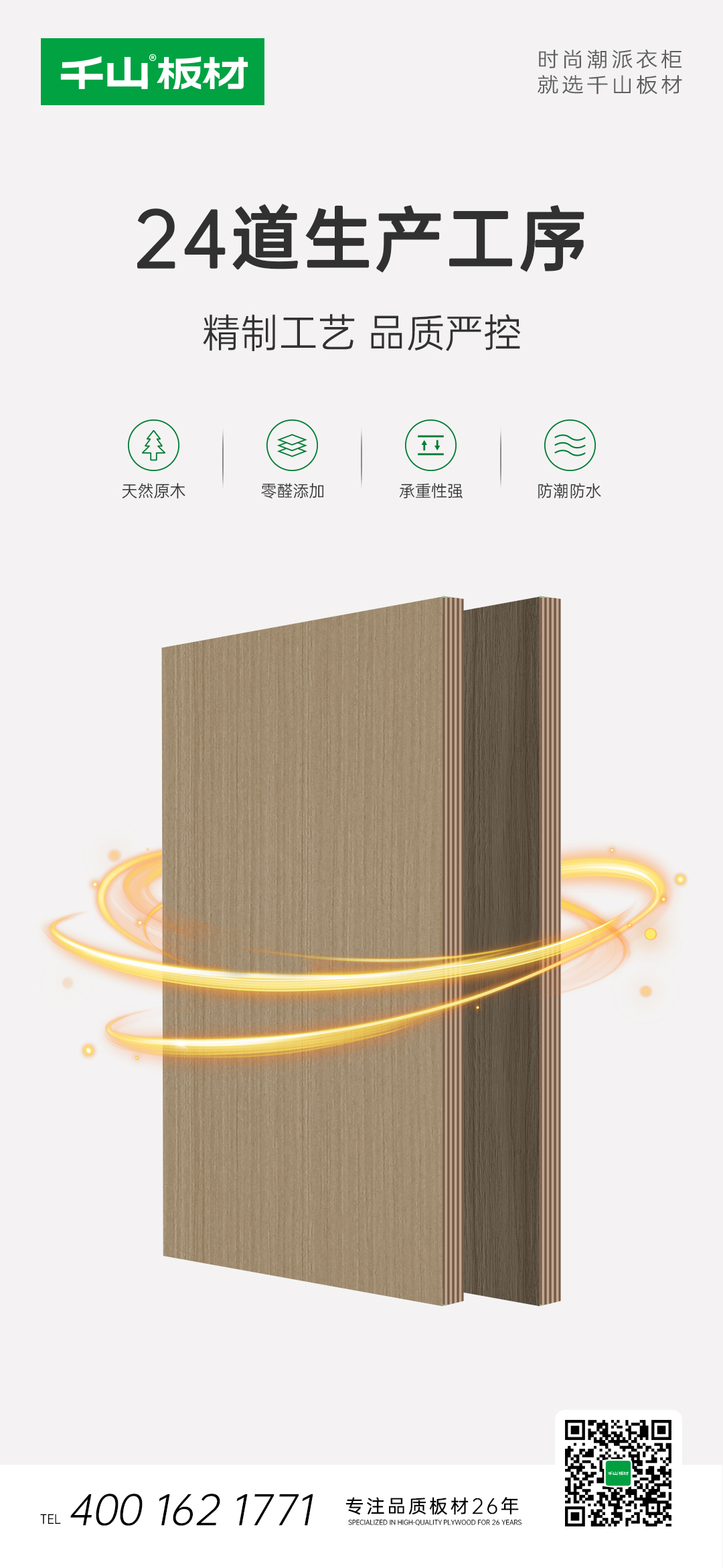 好的背板不但可以讓柜子更加穩(wěn)固,還可以起到防潮防霉的作用,所以背板的使用至關重要。千山板材實木多層背板配置4.6厘/5厘/7厘/9厘等多種規(guī)格,充分滿足多樣化的產(chǎn)品需求。