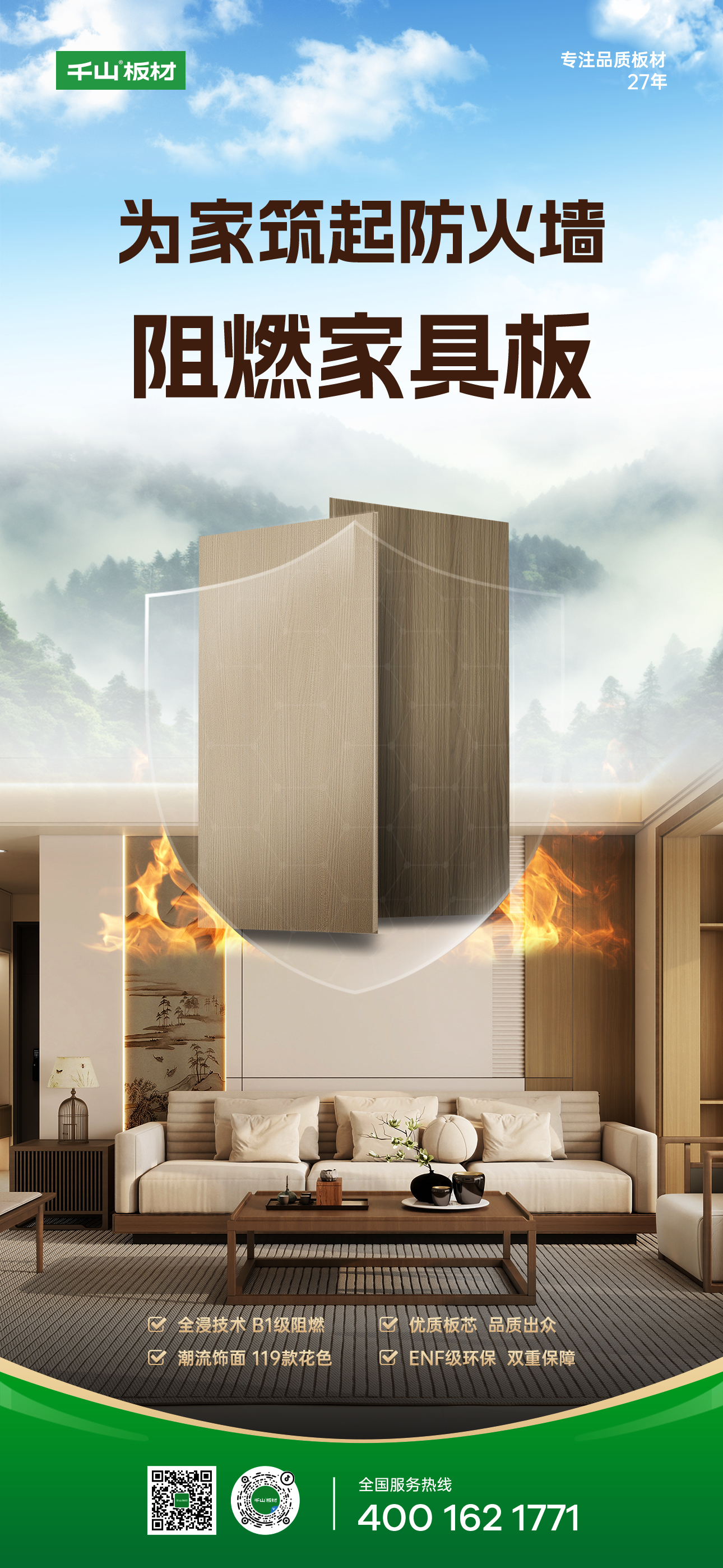 從“符合標(biāo)準(zhǔn)”到“主動(dòng)防護(hù)”,板材安全性能成為大家極為關(guān)注的重要指標(biāo),特別是在家庭環(huán)境中,健康和安全是首要考慮因素。千山阻燃家具板,將科技飾面與安全阻燃技術(shù)相融合,為家居空間“抵抗力”加分。