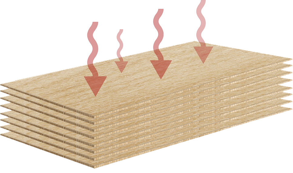 層層夾芯經過阻燃劑的高壓浸泡長達4小時,保證木纖維的完全滲透 阻燃性能達到國家標準B1級,能夠有效延緩火勢蔓延